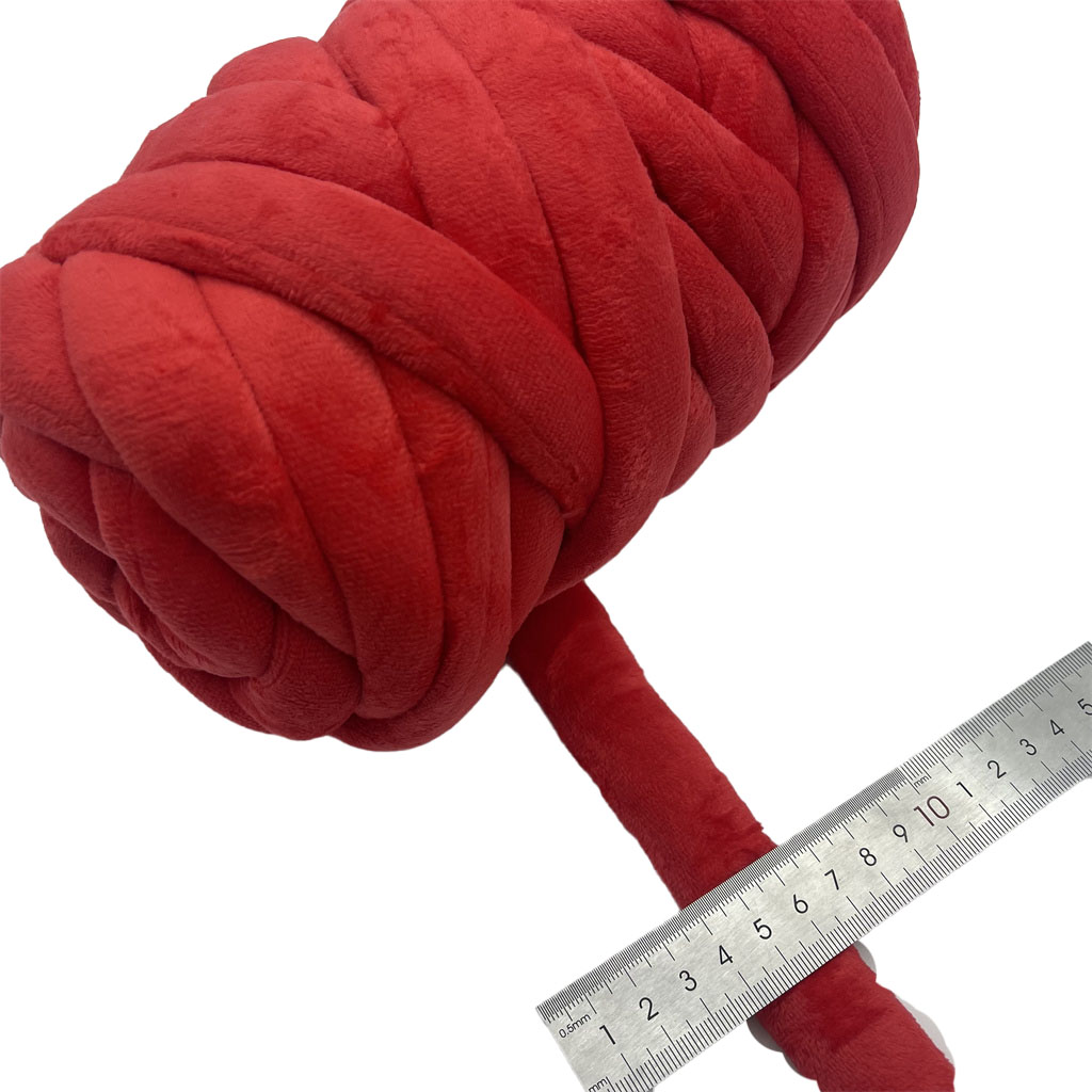 Questo prodotto è un filato fantasia di poliestere prodotto in fabbrica all'ingrosso, specificamente progettato per applicazioni di lavorazione a maglia. Il filato è costruito come un tubo di velluto con un diametro costante di 2 cm, conferendogli una forma sostanziale e tridimensionale. La sua composizione è una miscela di poliestere e cotone, che unisce la stabilità strutturale e la resilienza del poliestere con il tocco naturale del cotone. Questa combinazione di materiali contribuisce alla forma definita e alle proprietà tattili del filato. La struttura tubolare preformata facilita il processo di lavorazione a maglia, consentendo la creazione efficiente di tessuti strutturati e accessori senza la necessità di strumenti tradizionali. Le sue dimensioni e la sua costruzione lo rendono adatto alla realizzazione di articoli dalla consistenza voluminosa e morbida.