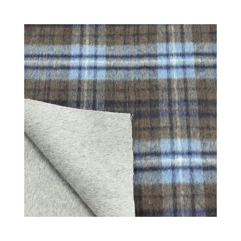 Questo tessuto, designato come articolo ZZH25003, è un tessuto pesante composto da 50% lana e 50% altre fibre. Con una massa per unità di superficie di 950 g/m, il materiale dimostra densità e peso sostanziali. La superficie presenta un motivo scozzese che combina i toni del blu e del marrone in una formazione a griglia strutturata. Questa categoria di peso contribuisce alla resistenza al vento e alla capacità di isolamento del tessuto. La composizione della miscela lana influenza le proprietà di regolazione termica del tessuto. Queste specifiche tecniche rendono questo tessuto applicabile per soprabiti invernali dove è richiesta una protezione sostanziale dalle condizioni climatiche fredde.