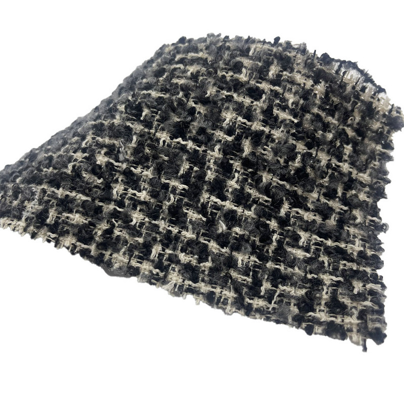 Questo tessuto, designato come articolo 23515, è un tessuto tweed composto da 77% poliestere, 14% cotone, 4% lana, 4% acrilico e 1% nylon. Con una massa per unità di superficie di 420 g/m², presenta una struttura di peso medio. La superficie presenta un motivo in rilievo combinato con una struttura di filato ad anello, creando un effetto tattile strutturato. La miscela multifibra integra la stabilità del poliestere, l'assorbimento dell'umidità del cotone, il carattere naturale della lana, il loft dell'acrilico e il rinforzo del nylon. Questa combinazione si traduce in un tessuto con dimensionalità superficiale e integrità strutturale. Queste caratteristiche lo rendono applicabile agli indumenti che richiedono sia consistenza visiva che durata funzionale.
