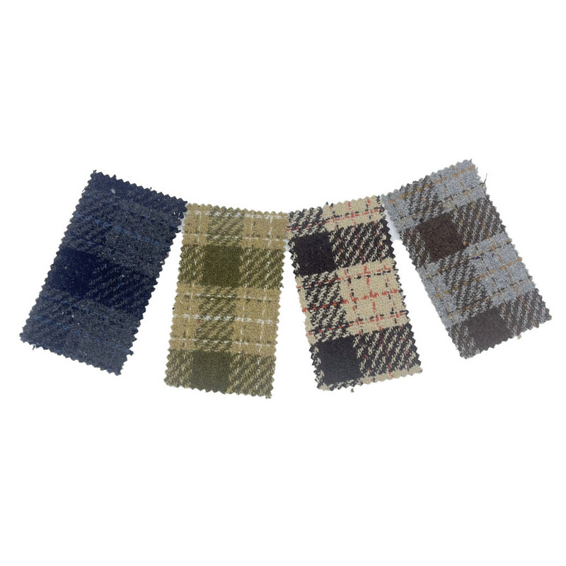 Questo tessuto, denominato articolo 4144, è un tessuto jacquard tweed composto da 10% lana e 90% altre fibre. Con una massa per unità di superficie di 550 g/m, presenta una struttura pesante. La superficie verde combina una base in armatura saia con motivi scozzesi a righe, realizzati attraverso il processo jacquard che integra bande lineari con formazioni a griglia. Questa tecnica produce motivi che si intersecano sulla caratteristica trama diagonale in twill. La composizione in misto lana contribuisce alla stabilità dimensionale e alla durabilità del tessuto. Queste caratteristiche tecniche si traducono in un materiale con motivo multistrato e densità strutturale, che lo rendono applicabile per articoli di abbigliamento in cui sono richiesti elementi di design complessi e resilienza del tessuto.