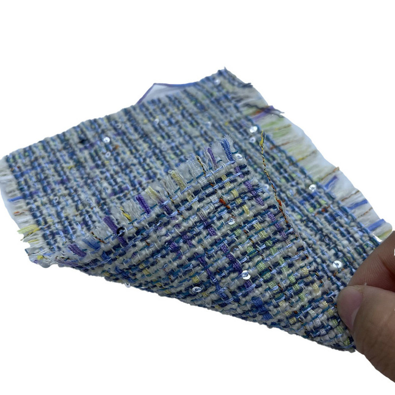 Questo tessuto, designato come articolo ZZH24018, è un tessuto tweed composto da 20% lana e 80% poliestere. Con una massa per unità di superficie di 560 g/m, il materiale presenta una struttura di peso medio. Il tessuto incorpora paillettes metalliche fissate all'interno della struttura in tweed, creando riflessi di luce intermittenti sulla superficie. La miscela di lana e poliestere fornisce un equilibrio tra le caratteristiche della fibra naturale e la consistenza strutturale. Questa combinazione si traduce in un materiale con variazione della struttura superficiale e stabilità dimensionale. Queste specifiche rendono questo tessuto in tweed applicabile ai cappotti da donna in cui vengono presi in considerazione sia l'interesse visivo che le prestazioni pratiche.